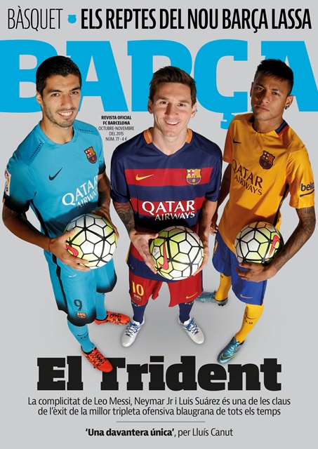 Together they form what people are calling the Trident, which Barça Magazine has classified as a proper name with capital letters due to it's unmistakable reference to the lethal potential of Barça's big three strikers. Messi, Neymar and Suarez are the stars of the greatest forward line in Club history in terms of goals scored, record-breaking numbers in Europe last season. And there's no question that much of their success has stemmed from the chemistry and mutual understanding shared by the trio both on and off the field.